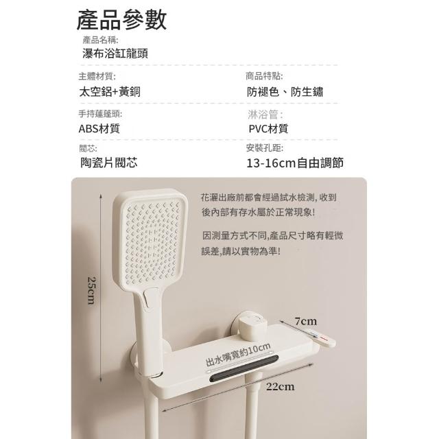 源森衛浴 浴缸水龍頭 淋浴噴頭花灑套裝 瀑布式出水龍頭 冷熱混水閥 浴室花灑