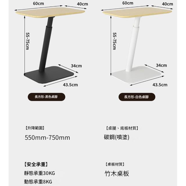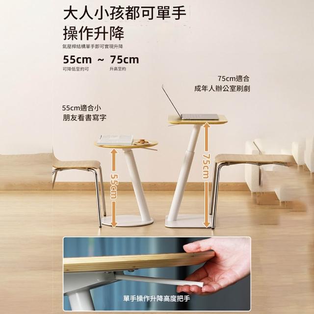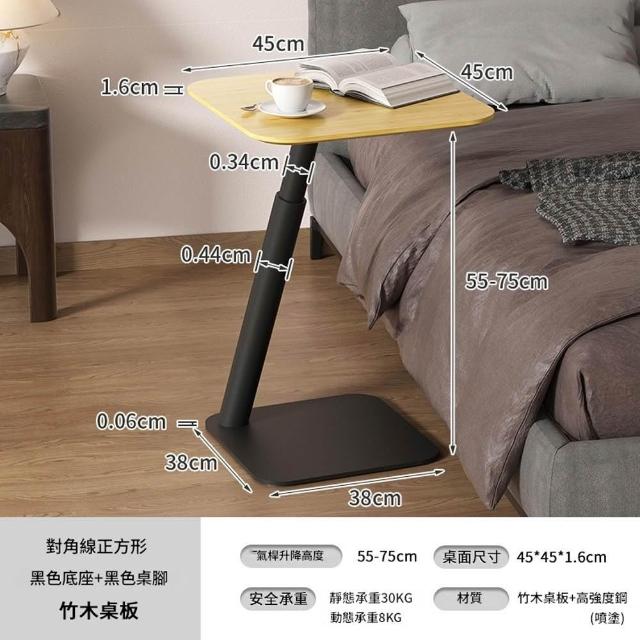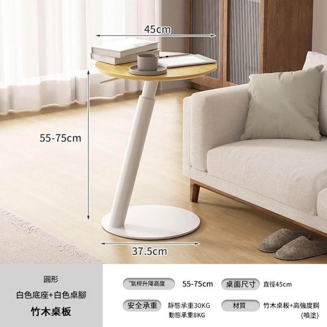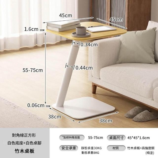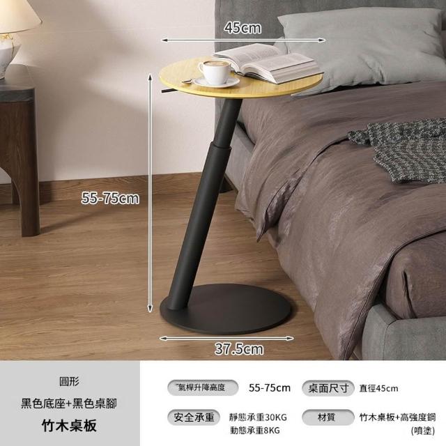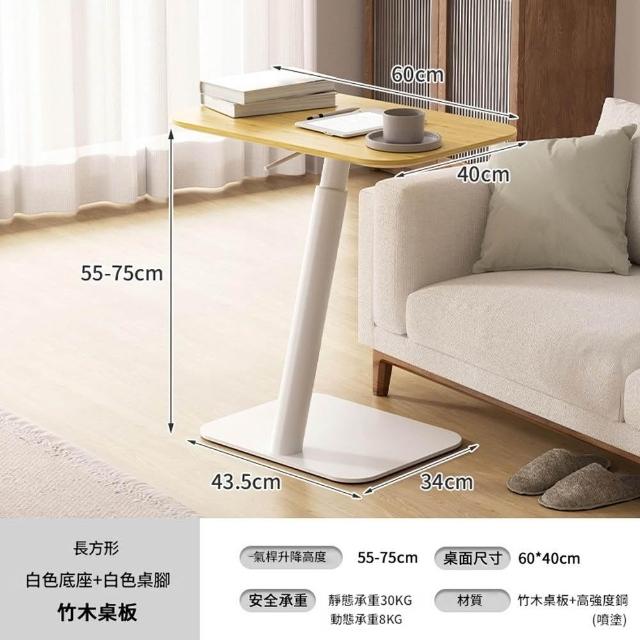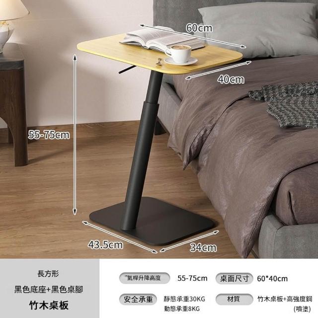 源森家居 氣動升降邊桌 高度可調(55-75cm)沙發邊幾 臥室移動電腦桌 床邊桌 茶几 咖啡桌