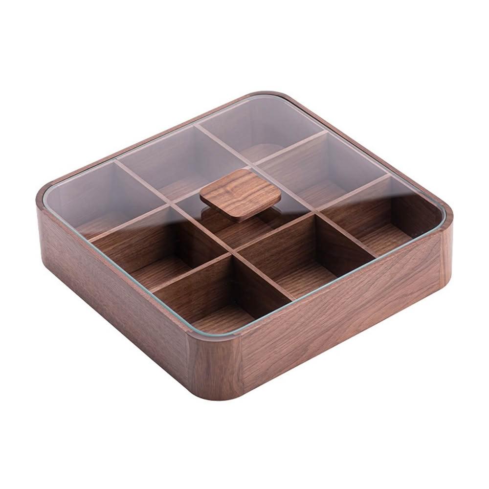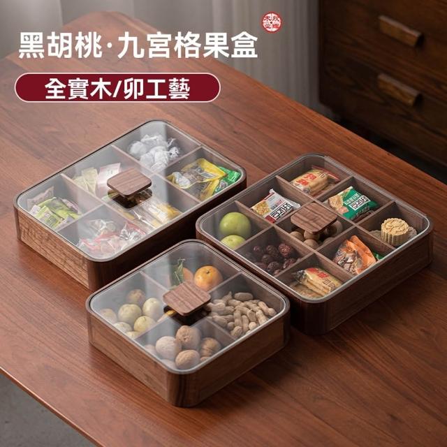 Loha 樂活家胡桃木乾果盒 實木乾果盤 堅果盒 糖果盒 收納盒 水果盤 九宮格收納盒 分格收納盒 附蓋幹果盒