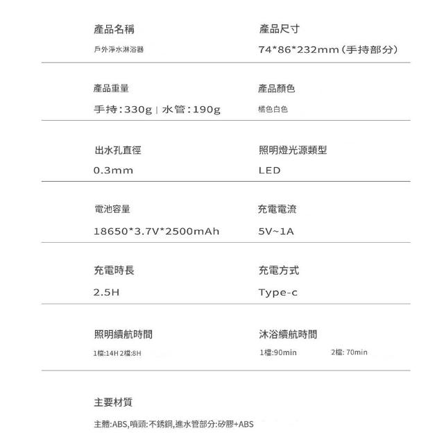 戶外便攜淋浴器輕量