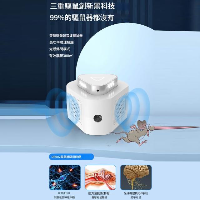 RTAKO超音波驅鼠器 靜音驅鼠器 四合一驅鼠器 驅趕鼠害蟲 DR002(雙波變頻/節能靜音/360°驅趕)