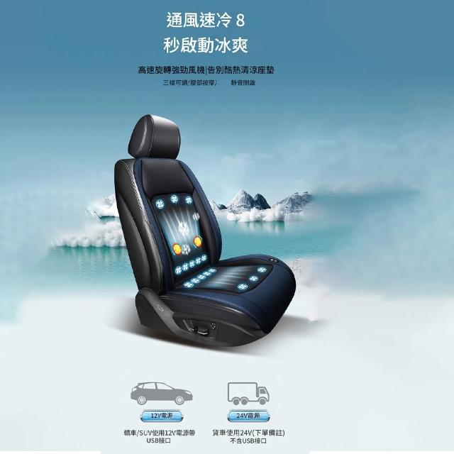 七了個三24風機 汽車通風按摩坐墊 智能自動啟停 12V/24V通用 腰部按摩 涼風椅墊 貨車/轎車 冰絲透氣