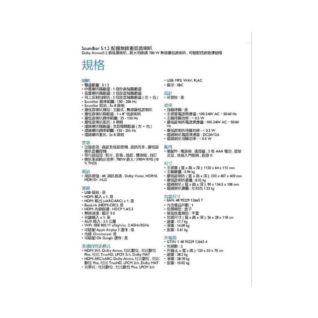 飛利浦 PHILIPS 5.1.2 聲道 全景聲 微型劇院 家庭劇院 音響 喇叭 TAB8967/96