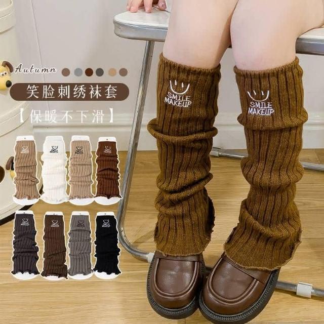 台灣現貨 女童刺繡襪套 堆堆襪套 泡泡襪套 毛線針織襪套 韓版秋冬保暖襪套