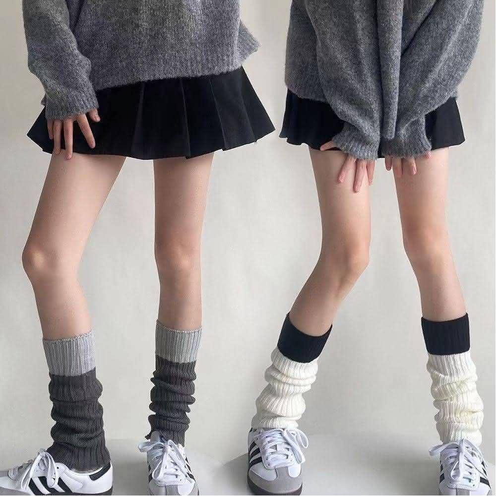 台灣現貨 針織撞色女襪套 鐵飾襪套 保暖襪套 針織襪套