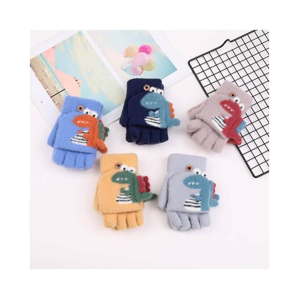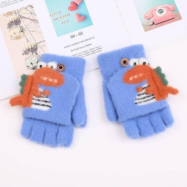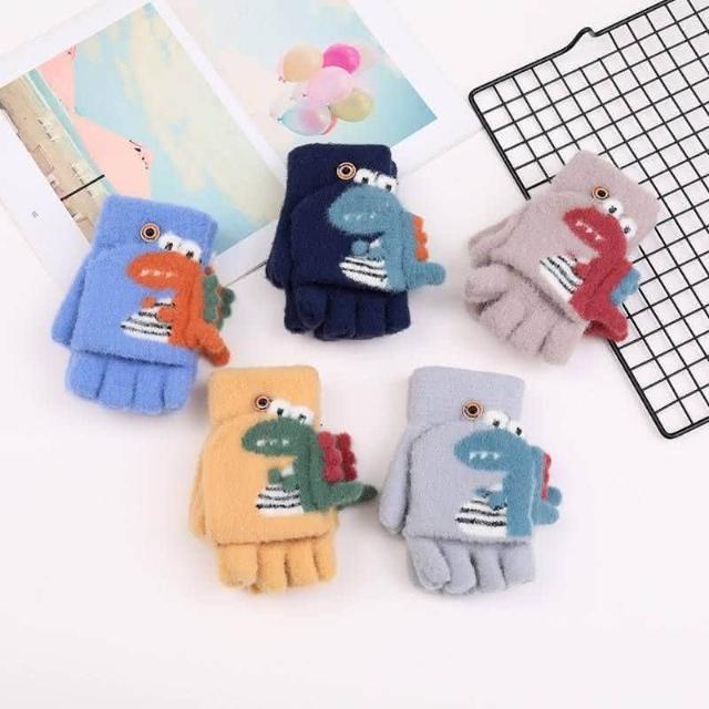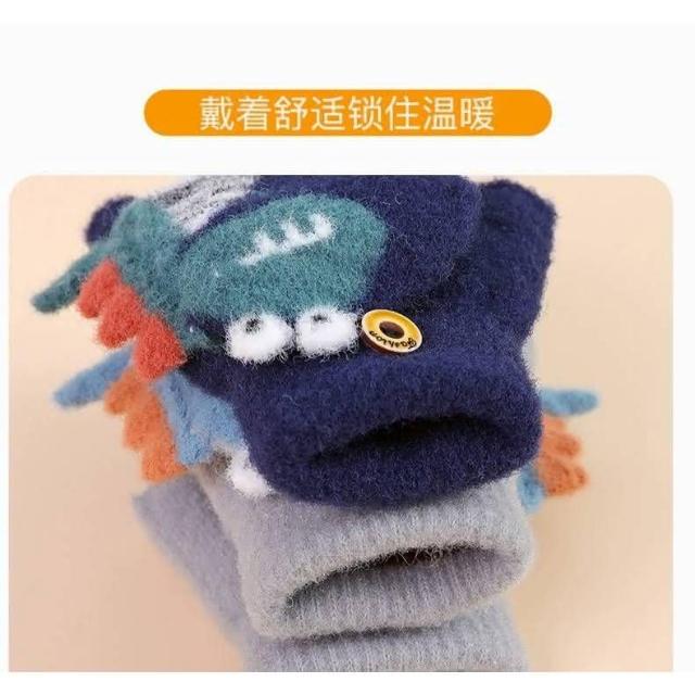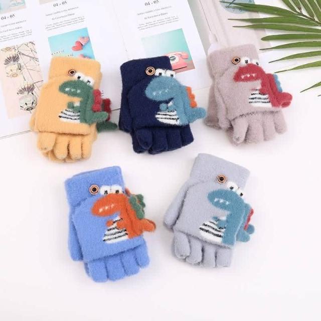 台灣現貨 可愛恐龍針織手套 半指手套 翻蓋手套 保暖手套