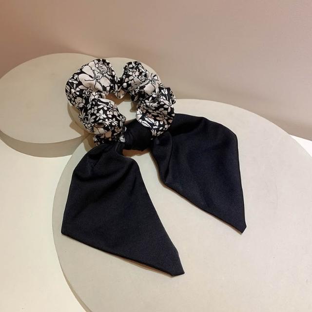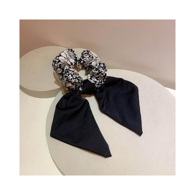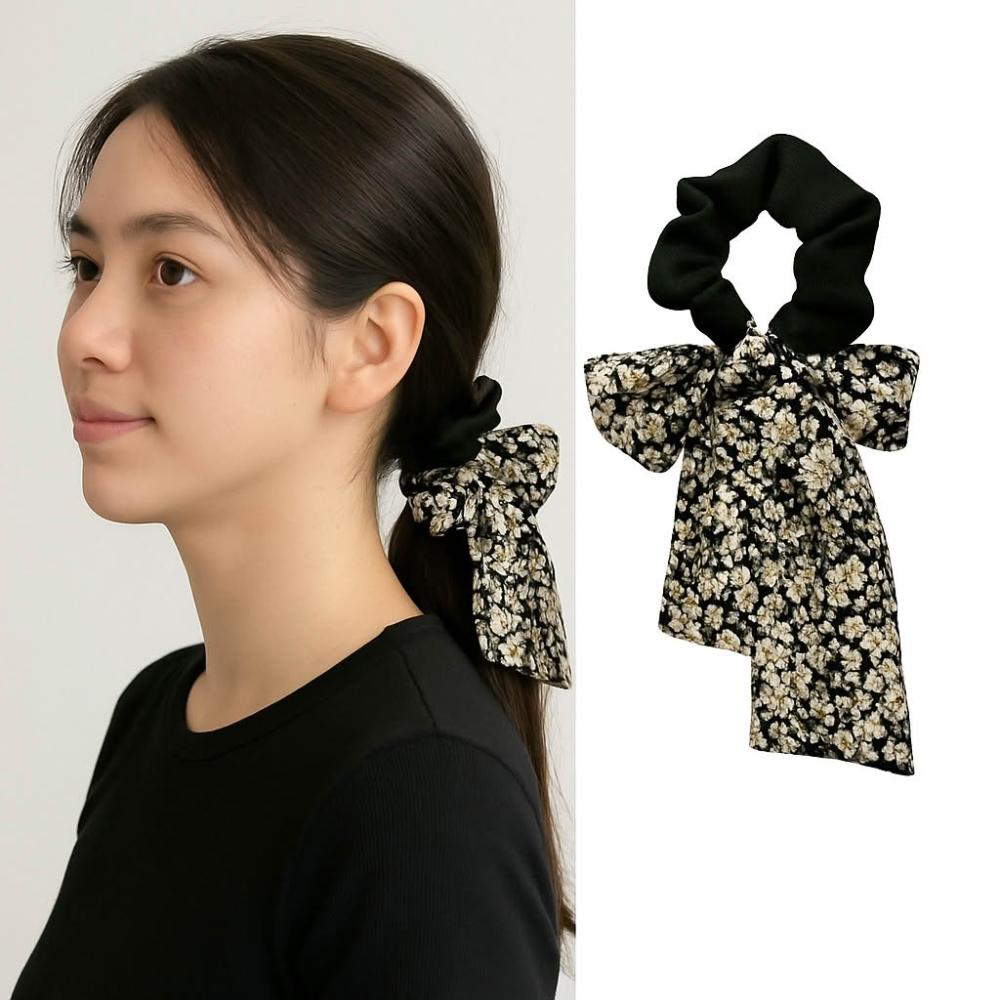 黑色碎花大腸髮圈 蝴蝶結大腸髮圈 氣質飄帶大腸髮圈
