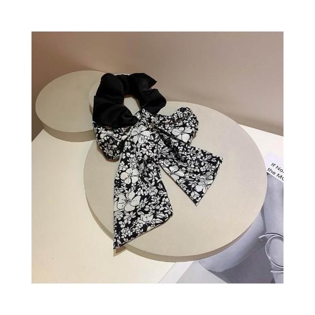 黑色碎花大腸髮圈 蝴蝶結大腸髮圈 氣質飄帶大腸髮圈