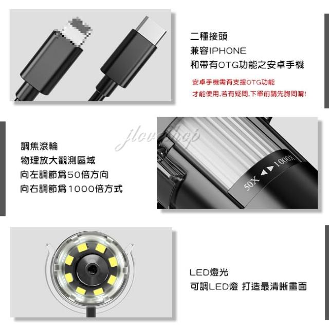 婕樂數位手機專用電子顯微鏡 高清顯微鏡 1600倍 蘋果ios安卓手機通用 維修顯微鏡 typec顯微鏡