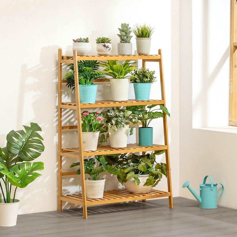 宅咖購物天然多層原木色花架 加厚板材 陽台花園戶外菜園 盆栽展示架 植物架 收納架