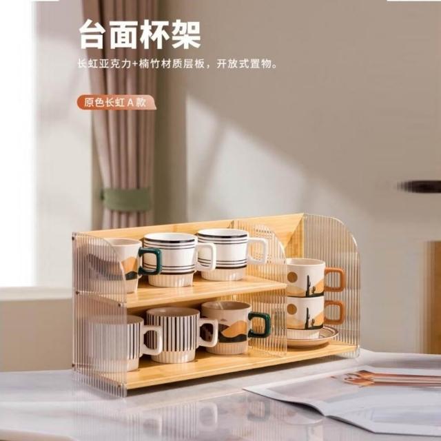 優品匯清倉特價 雙層臺面杯架 輕奢咖啡杯收納架 家用客廳餐桌水杯收納架 桌面置物架 最後一件