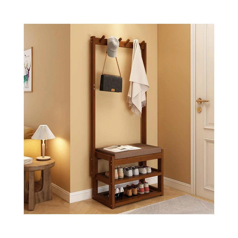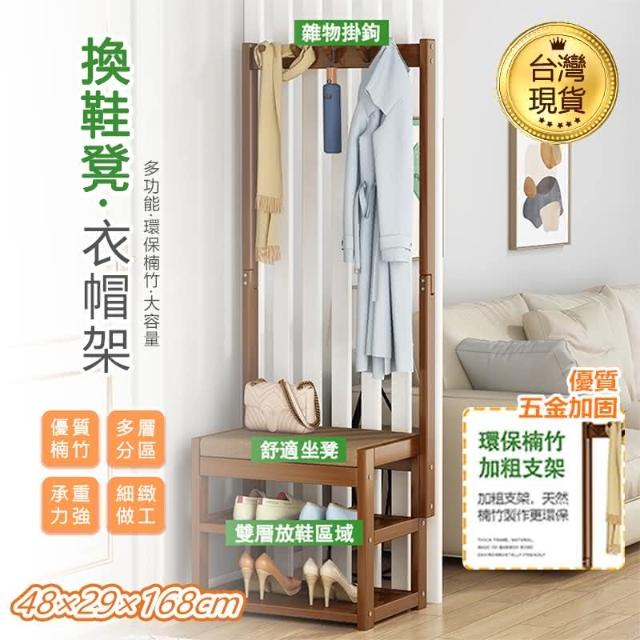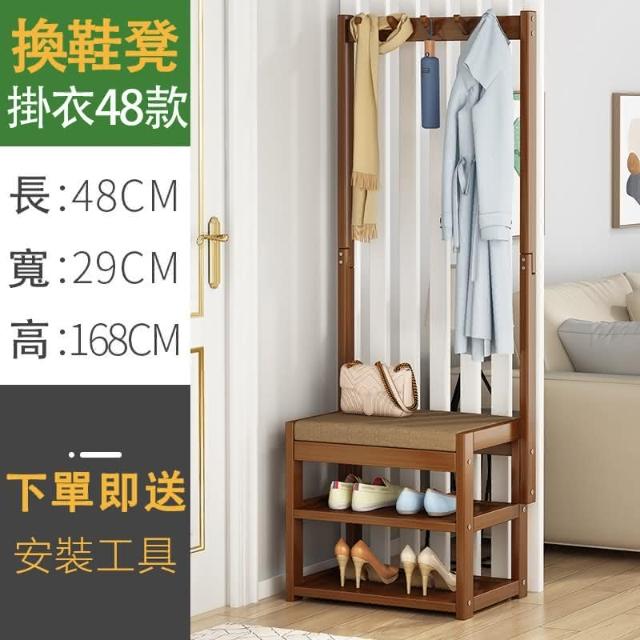 實木衣架 掛衣架 衣櫥 衣櫃 鞋櫃 玄關衣帽架 多功能分類收納衣帽架 加粗方管 穿鞋凳