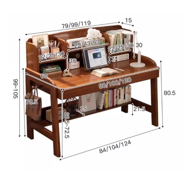 實木升降書架書桌 升降桌 辦公桌 電腦桌 書桌