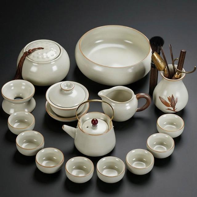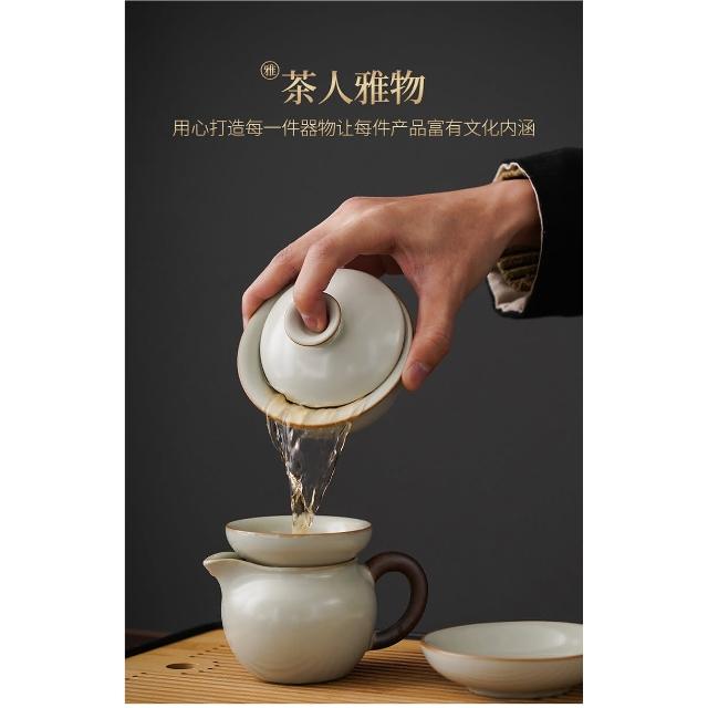汝窯功夫茶具 陶瓷茶壺 茶杯 茶盤 輕奢高級家用喝茶茶具套裝