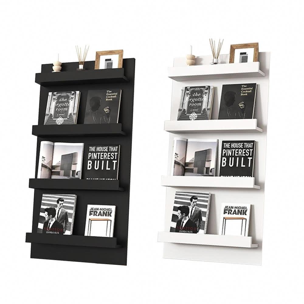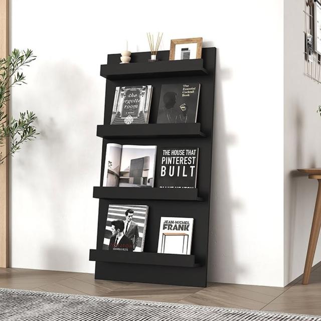 新北現貨 落地書架 靠墻收納架 黑膠北歐書架繪本展示架雜誌架多層定制架