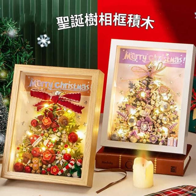 聖誕積木 聖誕樹相框 立體畫 聖誕節禮物 桌擺件 顆粒拼裝玩具
