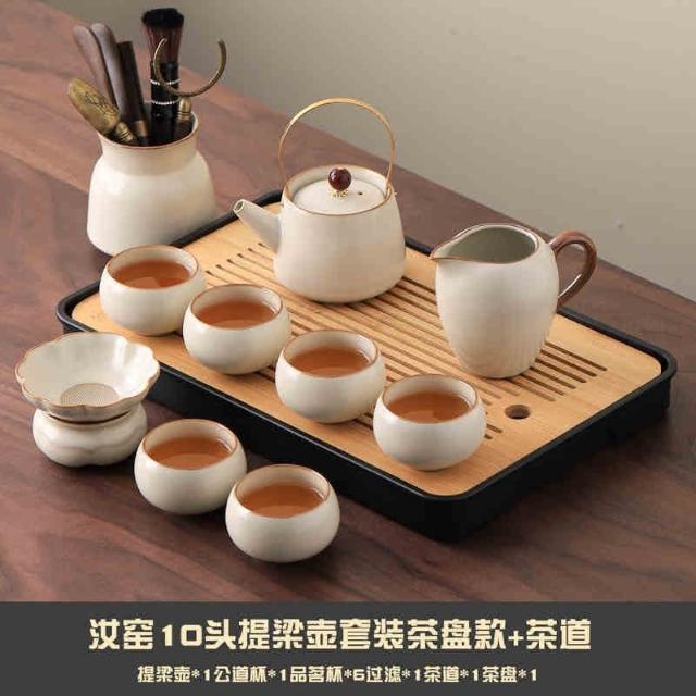 新款汝窯功夫茶具套裝 家用茶具 辦公室喝茶泡茶蓋碗茶壺茶杯子套裝 功夫茶套組