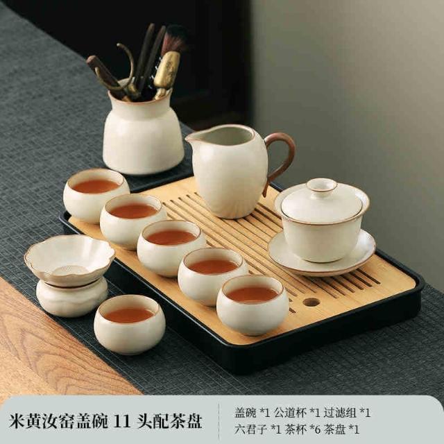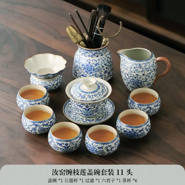 新款汝窯功夫茶具套裝 家用茶具 辦公室喝茶泡茶蓋碗茶壺茶杯子套裝 功夫茶套組