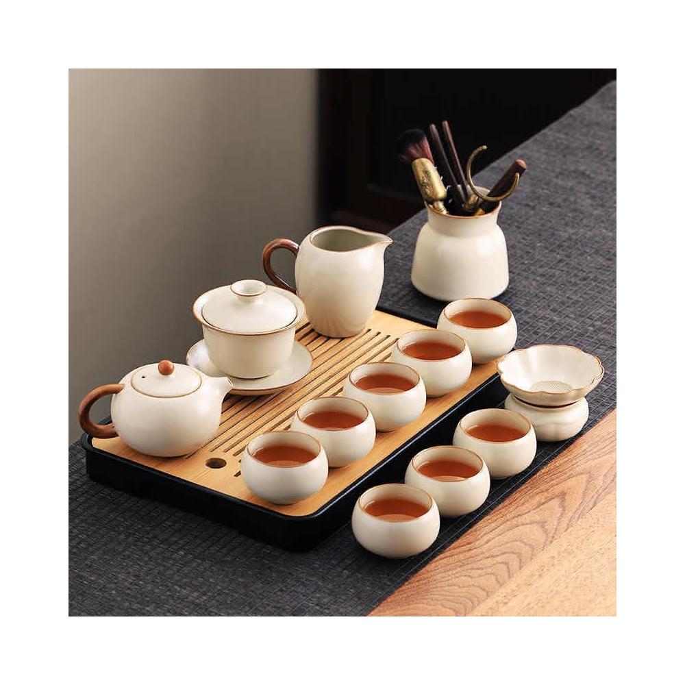 新款汝窯功夫茶具套裝 家用茶具 辦公室喝茶泡茶蓋碗茶壺茶杯子套裝 功夫茶套組