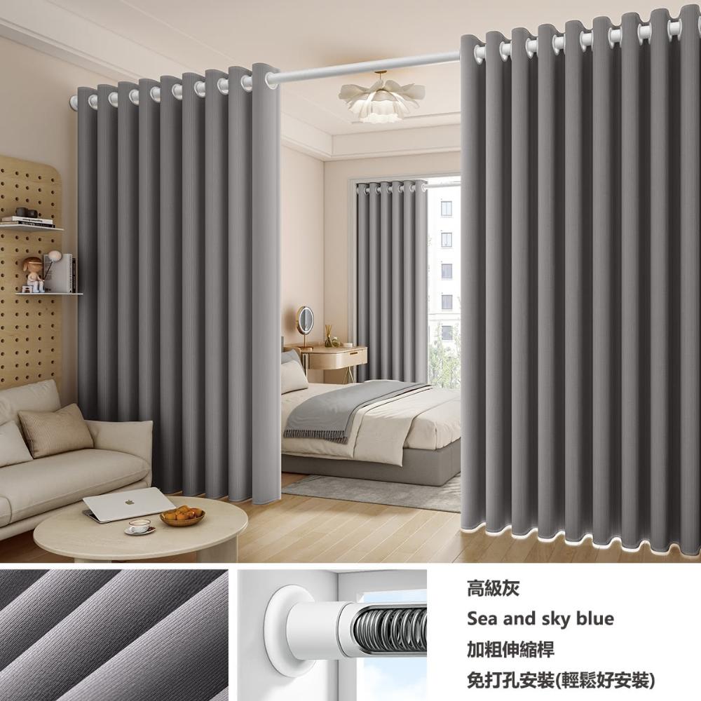 隔斷簾 全遮光窗簾含伸縮桿 免打孔安裝窗簾 門簾 隔間簾 落地窗簾 隔熱窗簾 飄窗窗簾