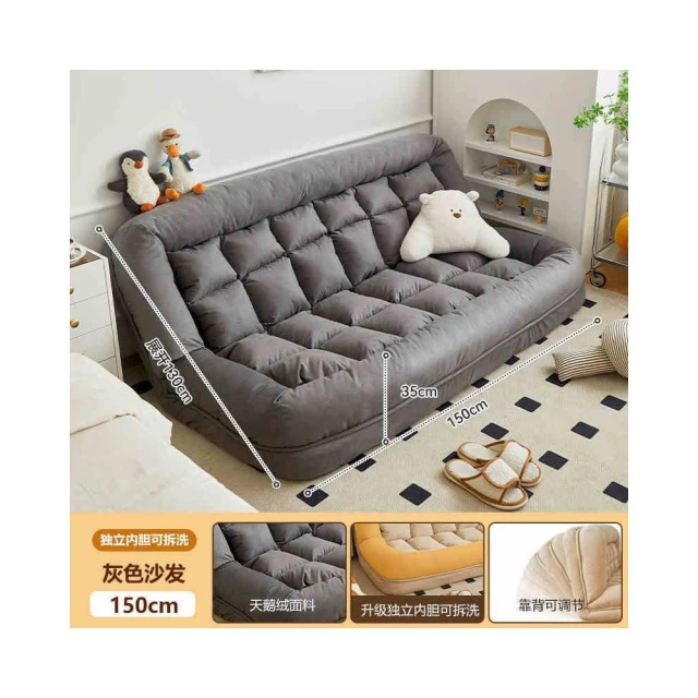 可開發票 人類狗窩沙發 懶人沙發 單人可躺可睡臥室小沙發 床邊榻榻米人類狗窩 雙人靠背壹體沙發