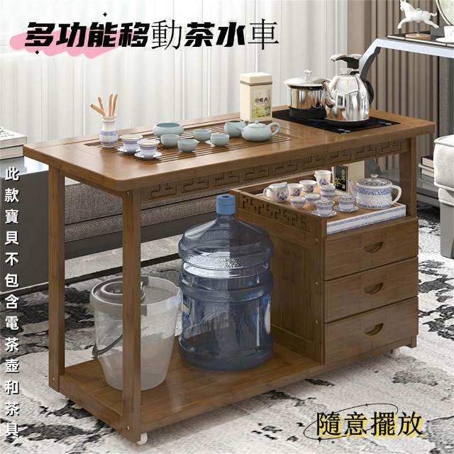 移動茶桌 家用小型茶車 泡茶臺邊櫃 實木茶吧茶幾 燒水壹體茶水架櫃子