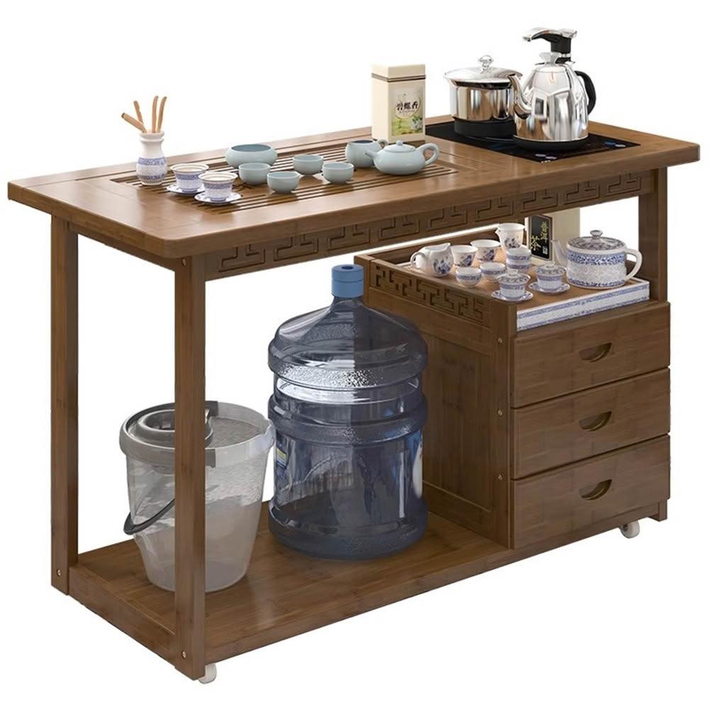 移動茶桌 家用小型茶車 泡茶臺邊櫃 實木茶吧茶幾 燒水壹體茶水架櫃子