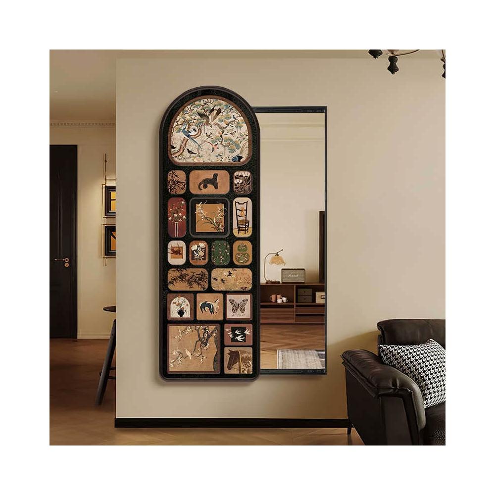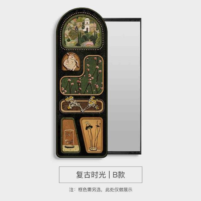 全身鏡 中古風可推拉全身鏡 隱藏式穿衣鏡 隱形裝飾畫暗藏式玄關鏡子壁掛畫
