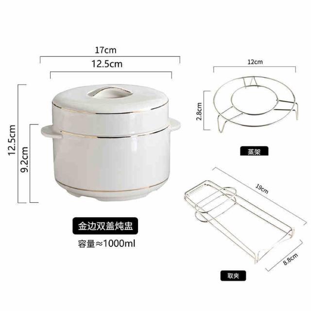 燉盅 矮胖陶瓷燉盅帶蓋 隔水燉 家用隔水燉盅雙蓋雙耳燉燕窩盅 燉罐小湯盅