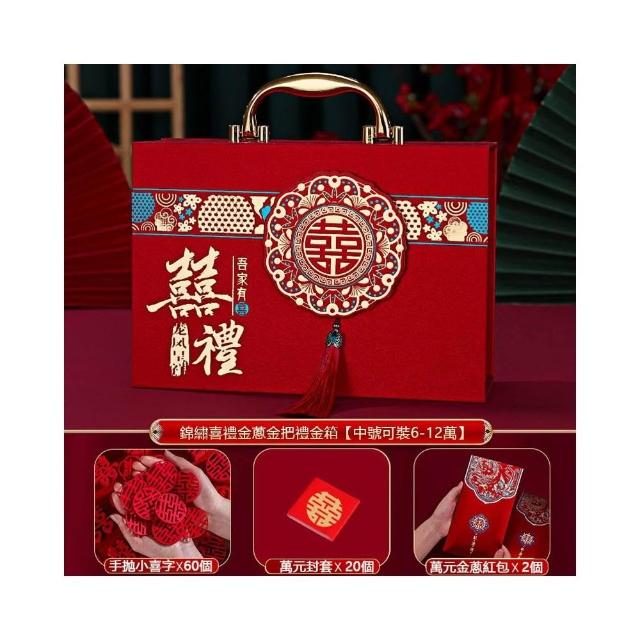 禮金箱 手提結婚禮金箱 婚禮提親現金盒子 國風手提大號紅包錢箱 訂婚下聘彩禮箱 禮金盒子