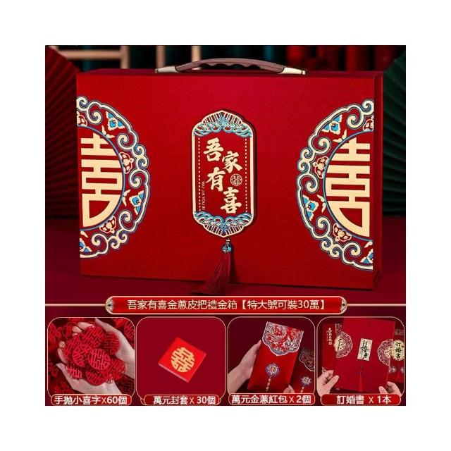 禮金箱 手提結婚禮金箱 婚禮提親現金盒子 國風手提大號紅包錢箱 訂婚下聘彩禮箱 禮金盒子