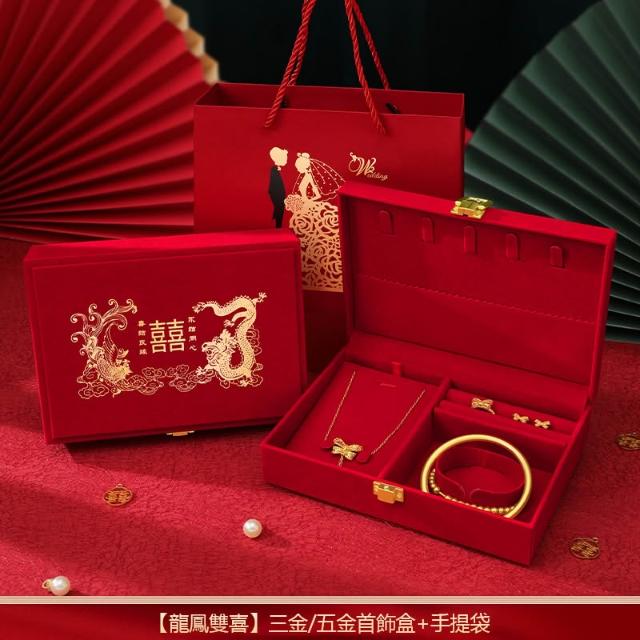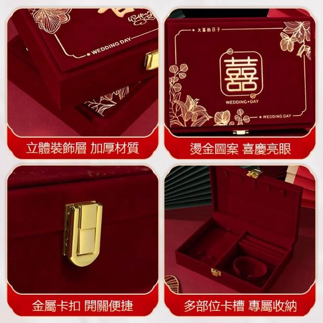 訂婚首飾盒 首飾箱 男方結婚彩禮盒子 婚嫁禮品盒 酒紅高級感婚禮聘禮盒