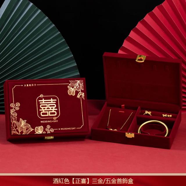訂婚首飾盒 首飾箱 男方結婚彩禮盒子 婚嫁禮品盒 酒紅高級感婚禮聘禮盒