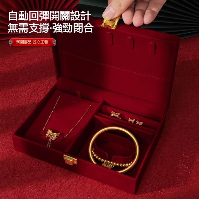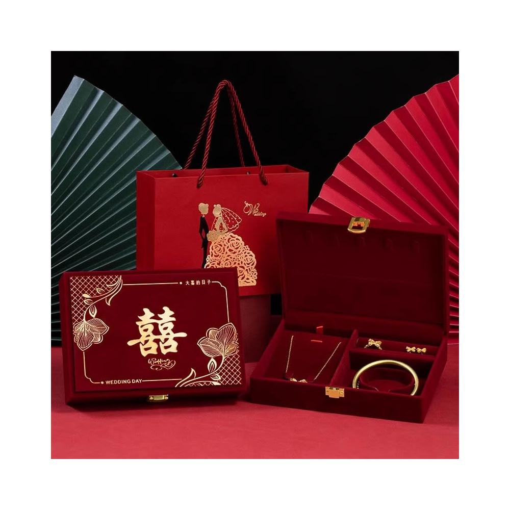 訂婚首飾盒 首飾箱 男方結婚彩禮盒子 婚嫁禮品盒 酒紅高級感婚禮聘禮盒