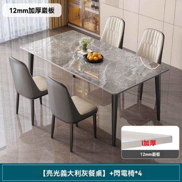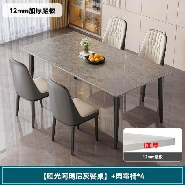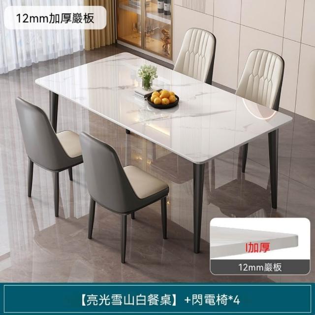 岩板家用餐桌 一桌四椅組合餐桌 現代簡約方形餐桌 家用吃飯桌