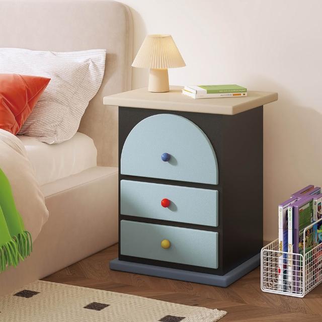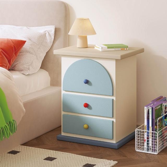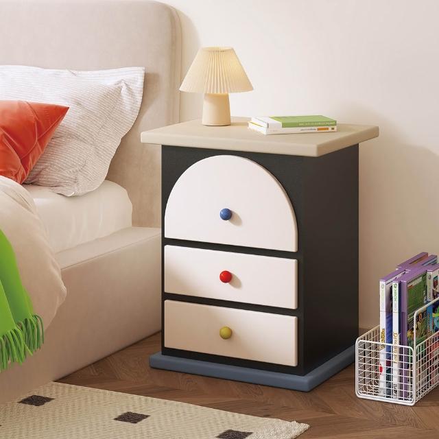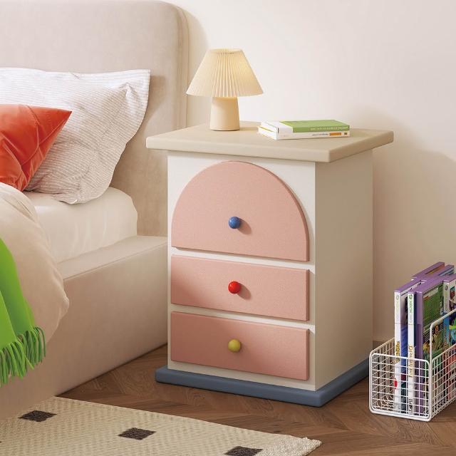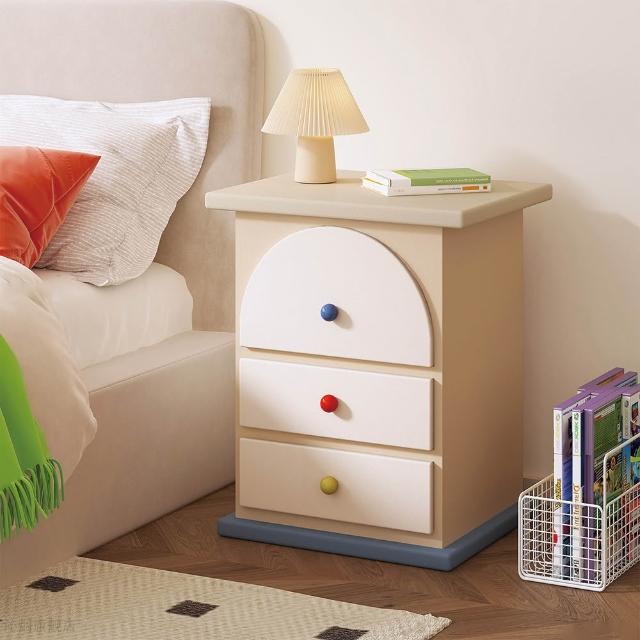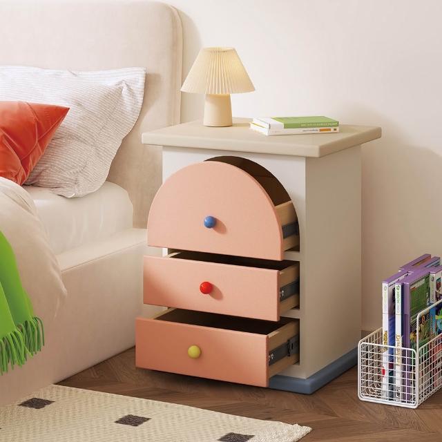 奶油風床頭櫃 多巴胺三抽櫃 簡約現代拼色彩色櫃子 臥室家用櫃 置物櫃 整裝發貨