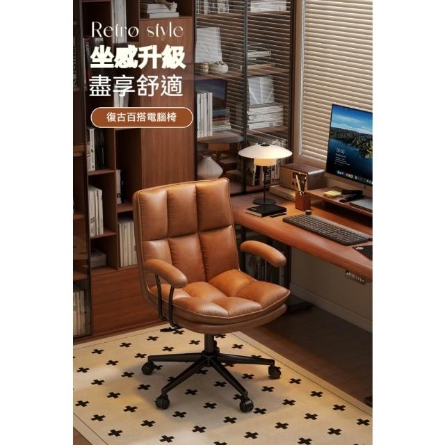 復古風電腦椅 人體工學椅 家用書房辦公椅 臥室化妝旋轉椅 靠背書桌椅 加厚軟包 舒適久坐