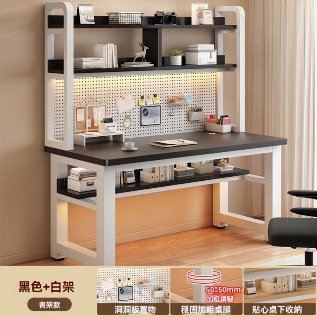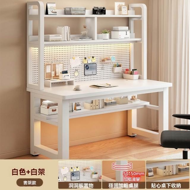 電腦桌80x60x169cm 洞洞板收納工作桌 北歐書桌書架一體 家用辦公桌 簡易置物桌