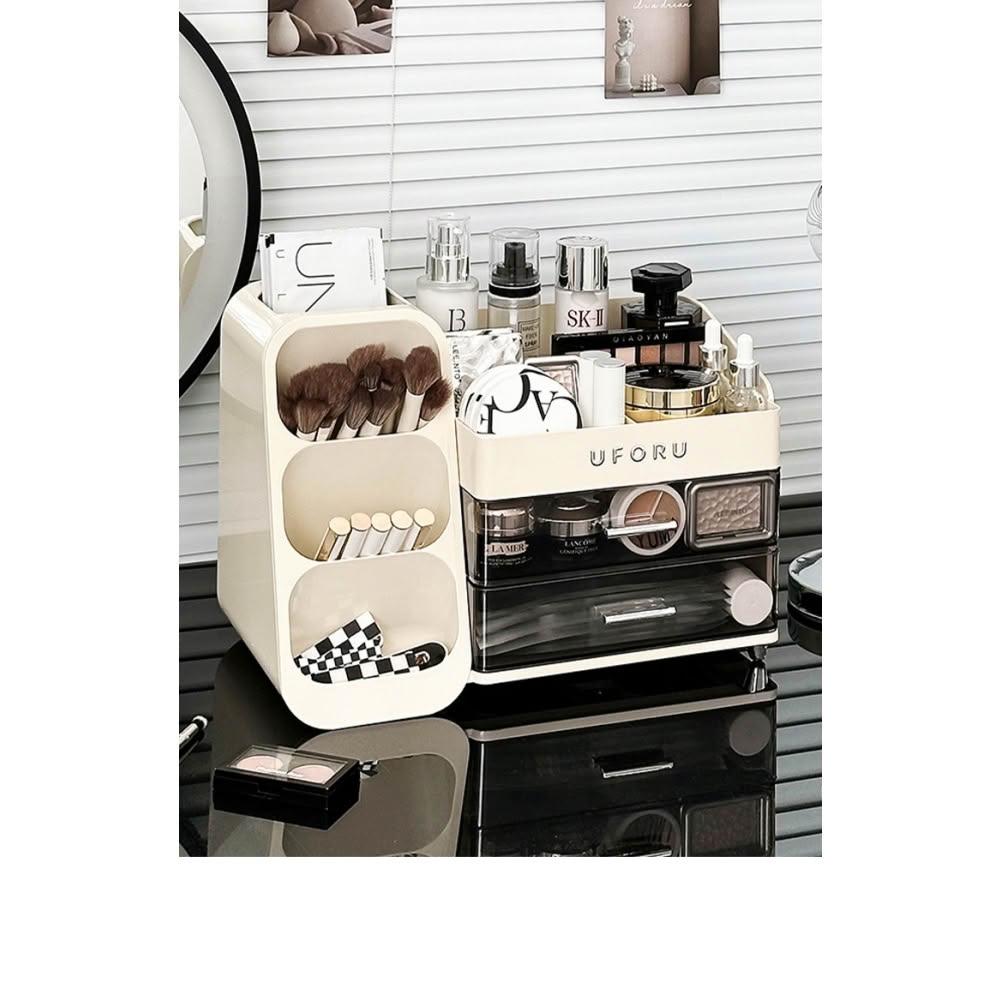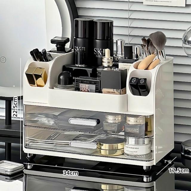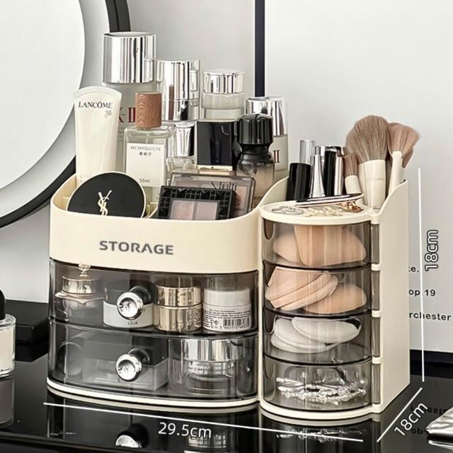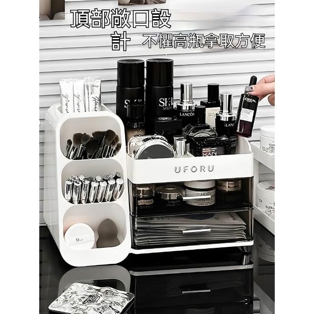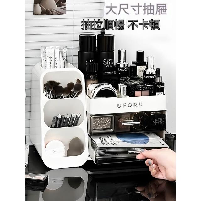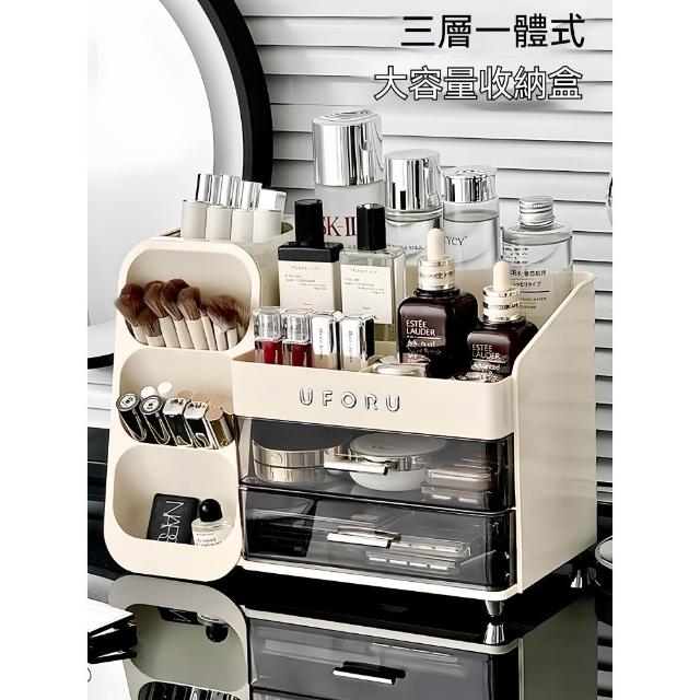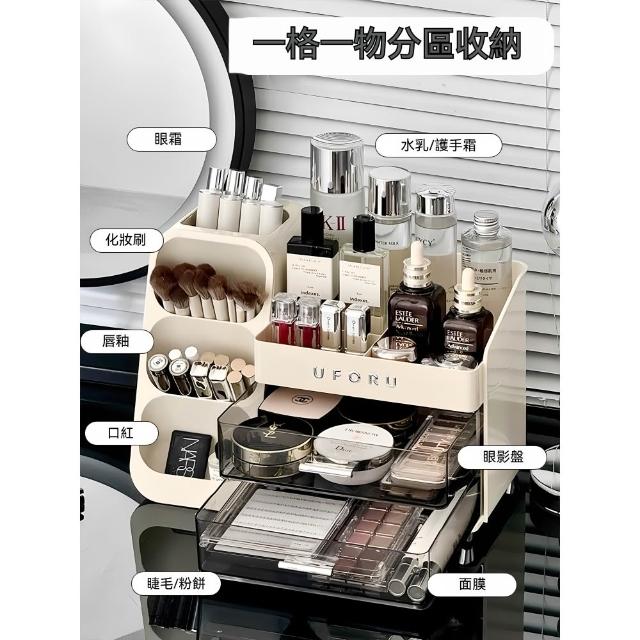 化妝品收納盒 梳妝檯桌面整理箱 護膚品置物架 帶抽屜化妝刷收納架 抽屜式收納盒