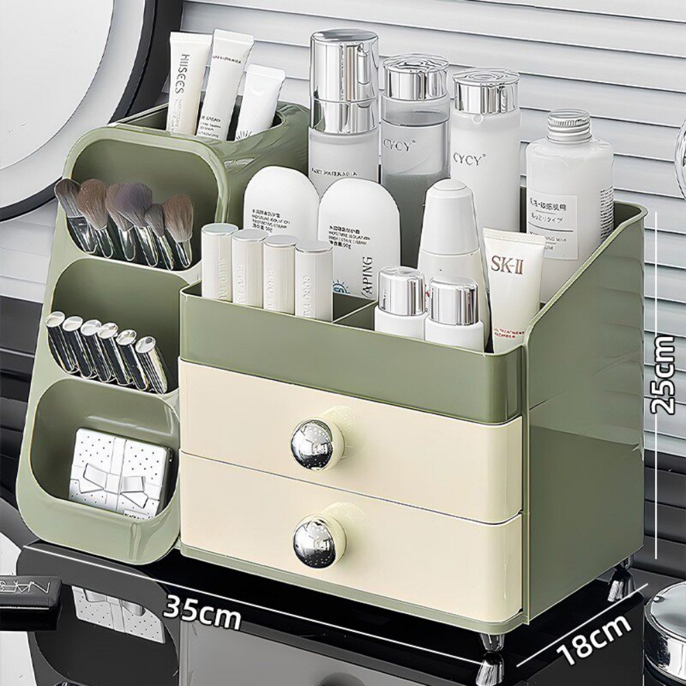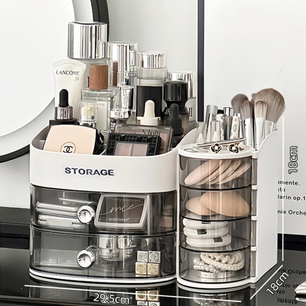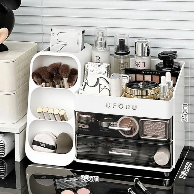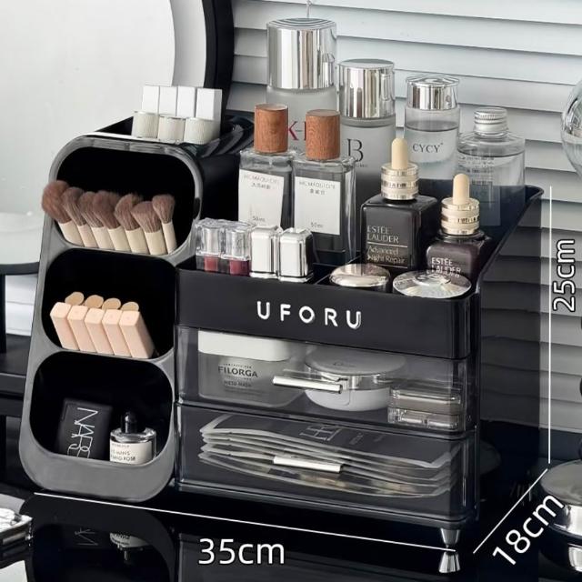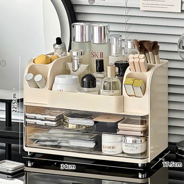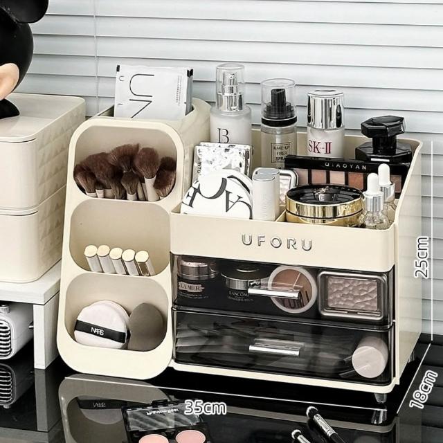 化妝品收納盒 梳妝檯桌面整理箱 護膚品置物架 帶抽屜化妝刷收納架 抽屜式收納盒