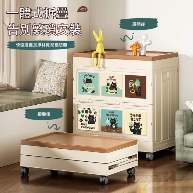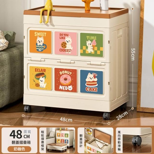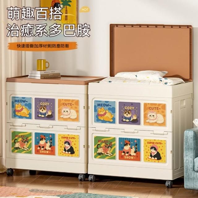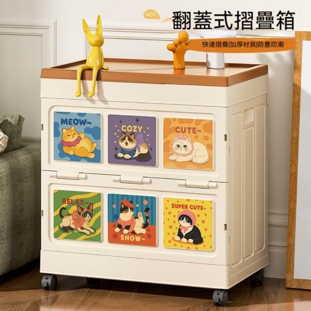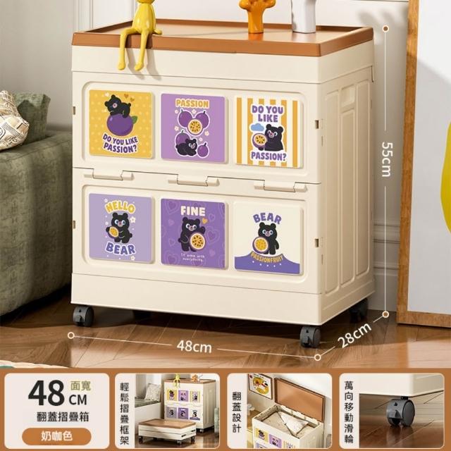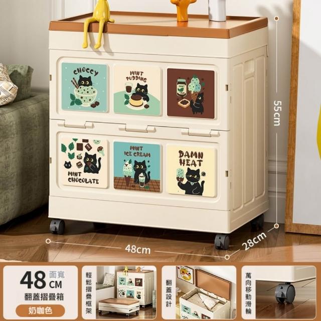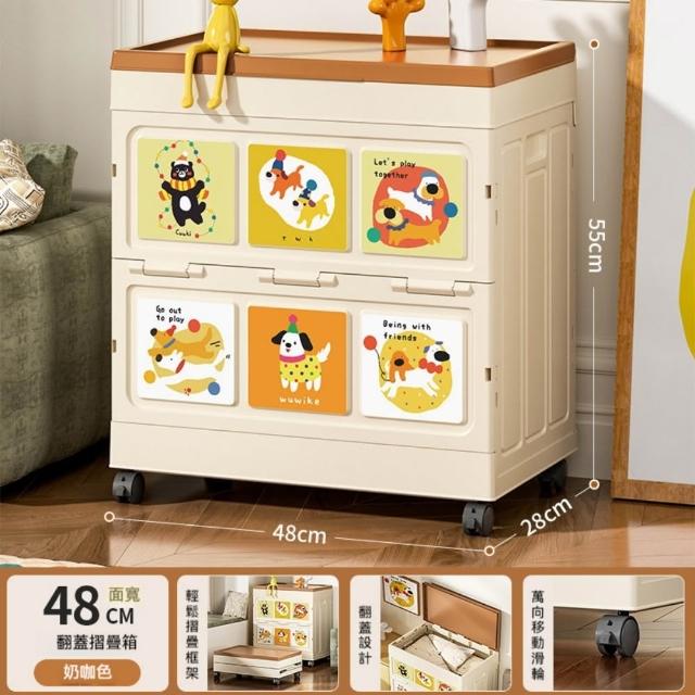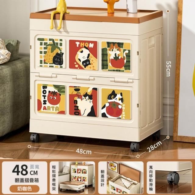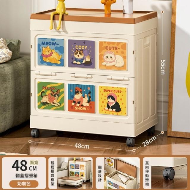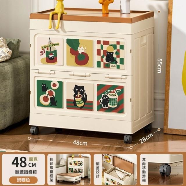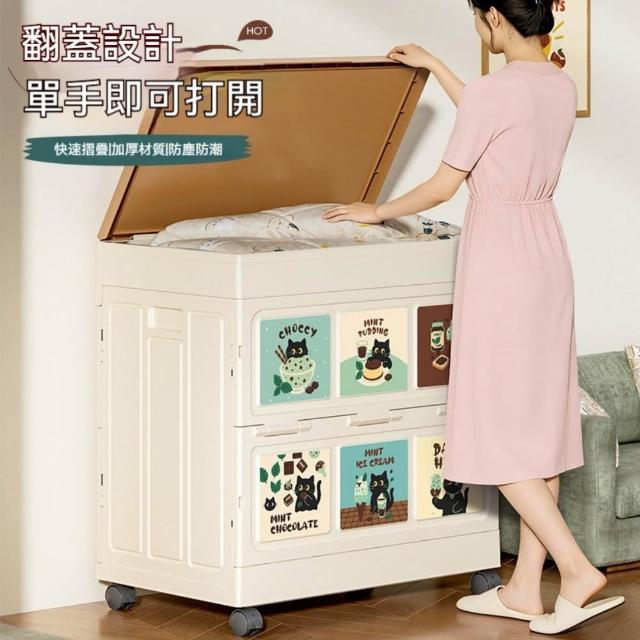 收納箱48*28*55cm 大容量衣服收納箱 整理箱 家用翻蓋帶輪儲物櫃 可摺疊衣櫃 雜物收納箱