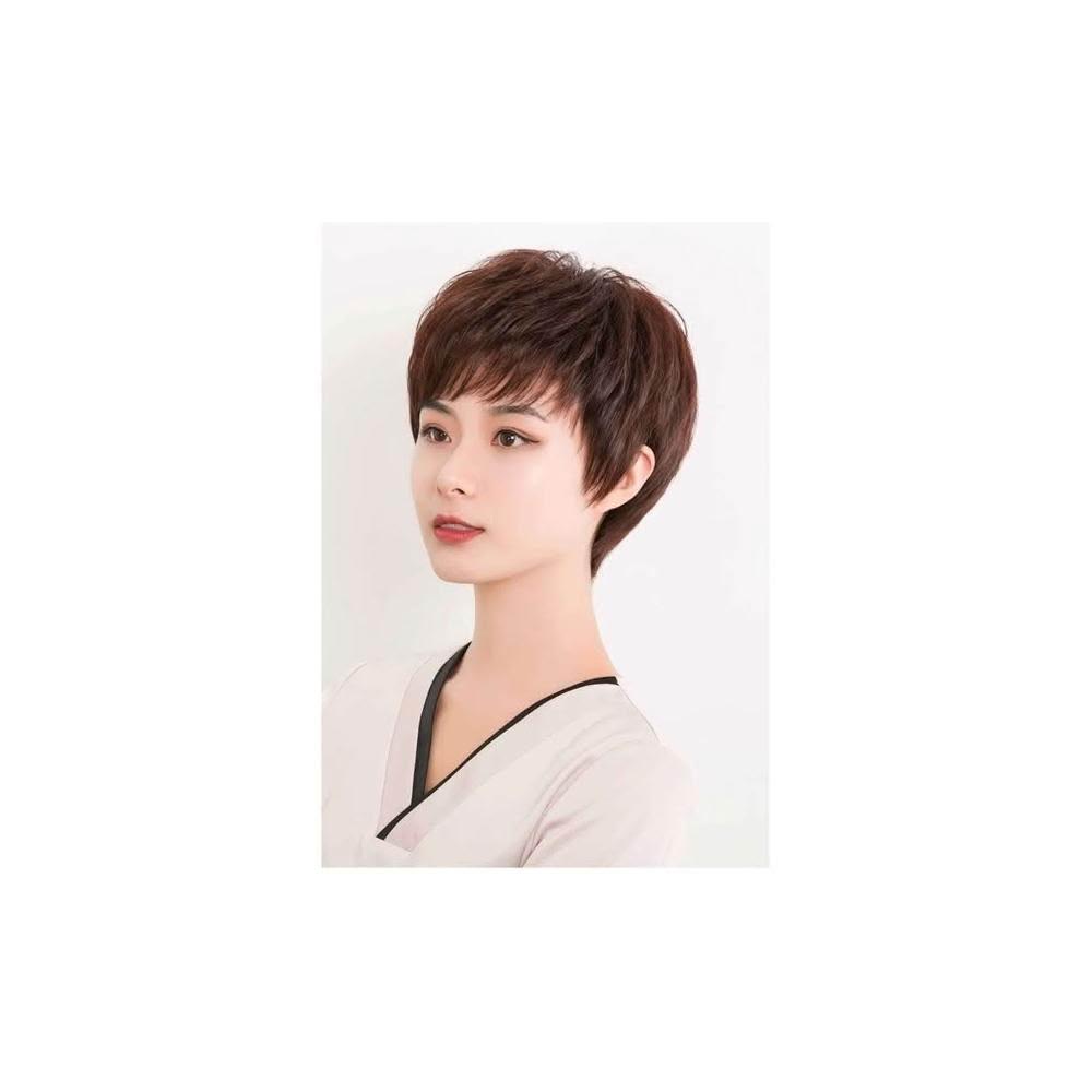 女生假髮 全真髮 整頂假髮 女生短髮 - 紋理髮型 微卷髮型 時髦女性髮型 黑二髮品 TFA