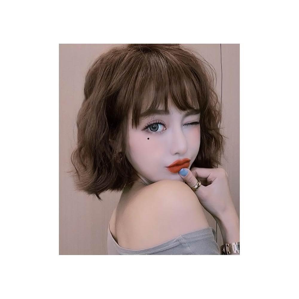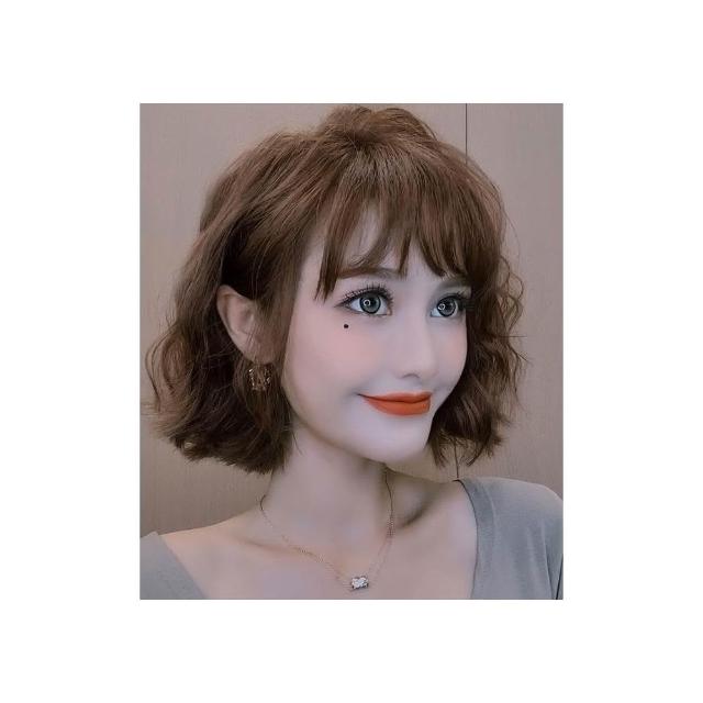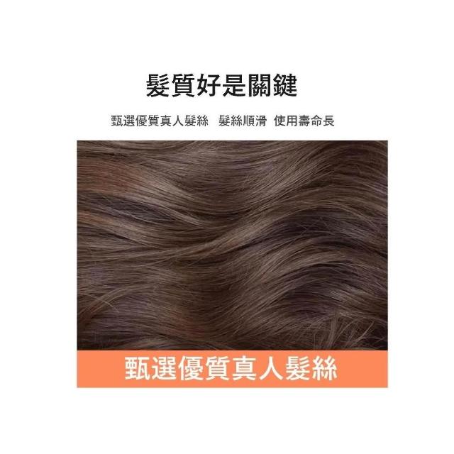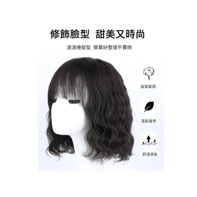 女生捲髮 整頂真髮 假髮 波浪捲髮 - 短捲髮造型 透氣內網 蓬鬆 黑二髮品 TKA
