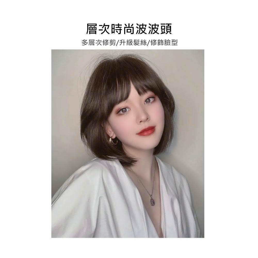 整頂假髮 全真髮 女生假髮 中短髮 -波波頭 空氣感瀏海 透氣內網 掉髮可用 黑二髮品 OYD