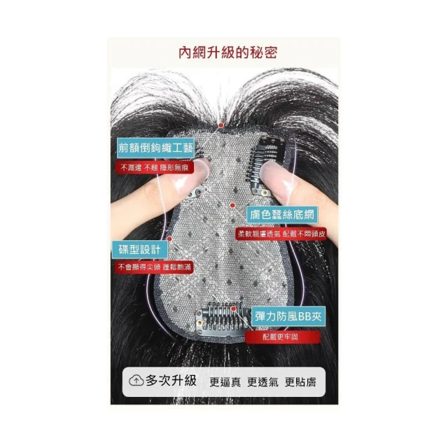 真髮髮片 頭頂假髮片 女生補髮 遮髮縫 遮白髮 -仿真頭皮 蓬鬆髮型 透氣內網 黑二髮品 TAZ18