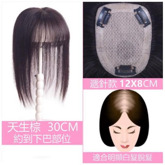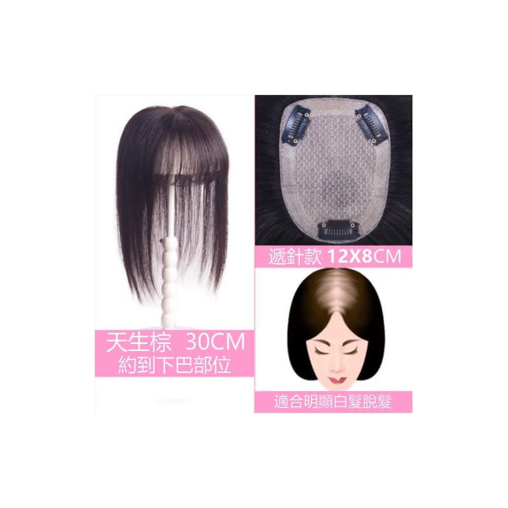 頭頂假髮片 真髮髮片 假髮 女假髮-空氣瀏海 補髮片 超逼真頭皮 遮白髮 (12*8) 黑二髮品 OKB1