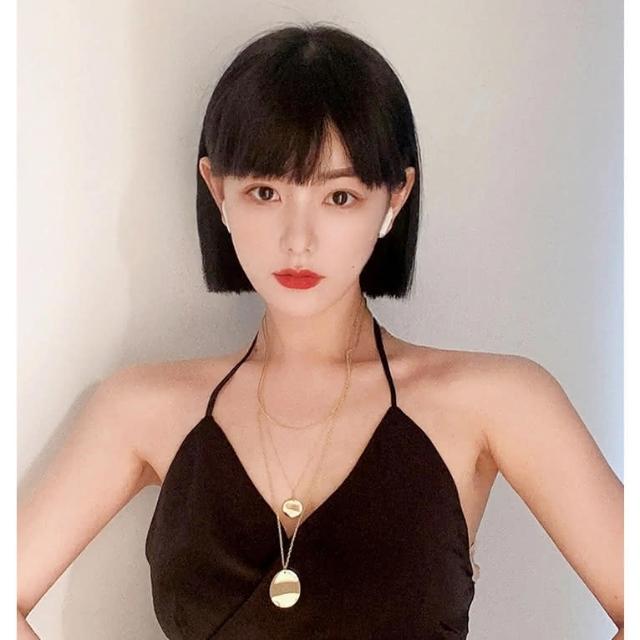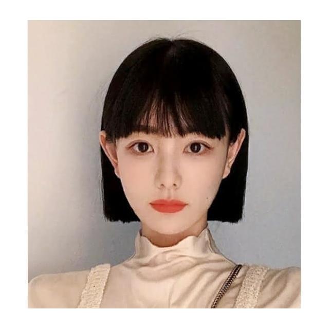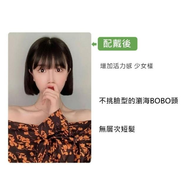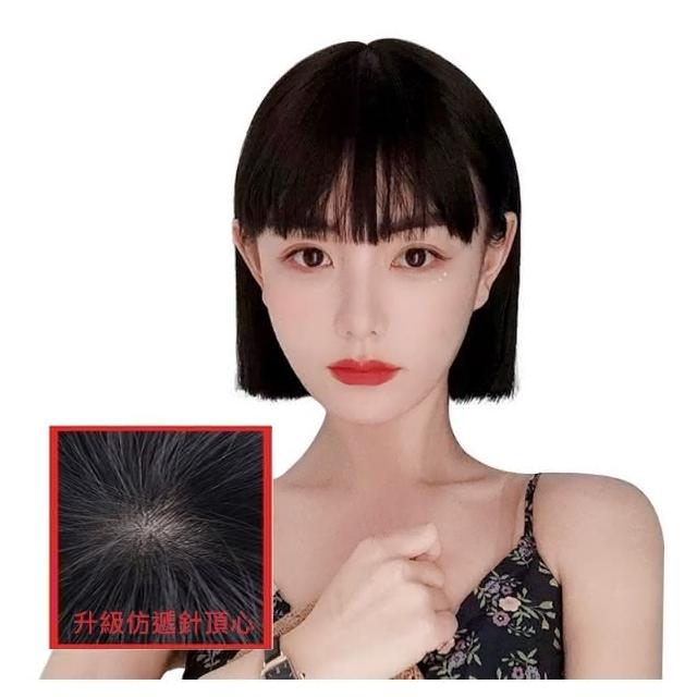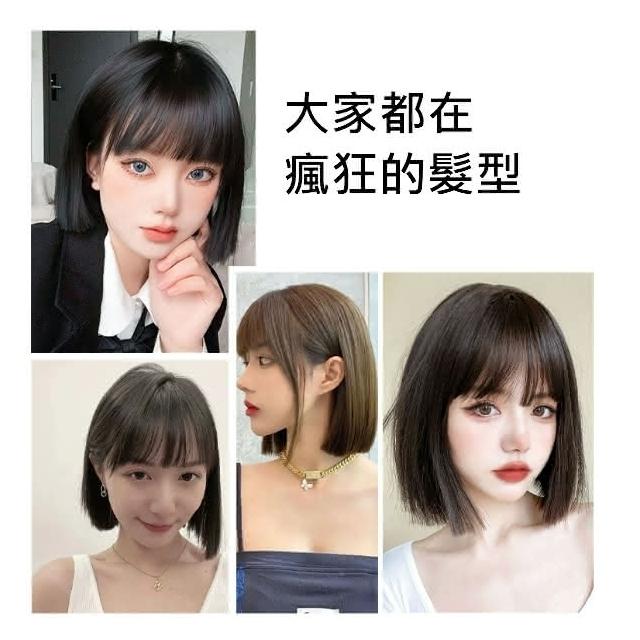 女生假髮 整頂假髮 全真髮 - 流行髮型 無層次短髮 齊瀏海 (30cm) 黑二髮品 TGH