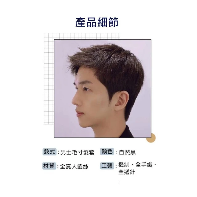 男士假髮 整頂假髮 全真髮 短髮-毛寸頭 短瀏海 掉髮可戴 透氣內網 黑二髮品 OTYU