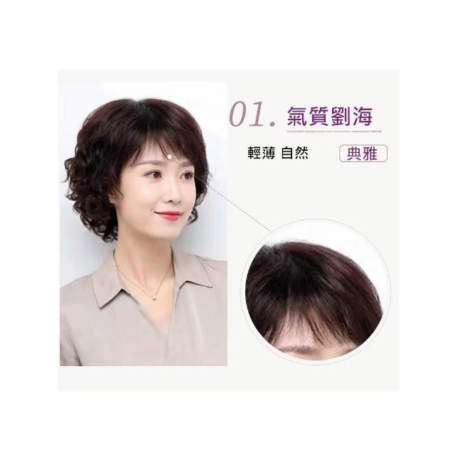 女生捲髮 真髮 媽媽髮型 短捲假髮 - 中老年髮型 全頭套 遮蓋白髮 告別染髮 整頂假髮 黑二髮品 TGF