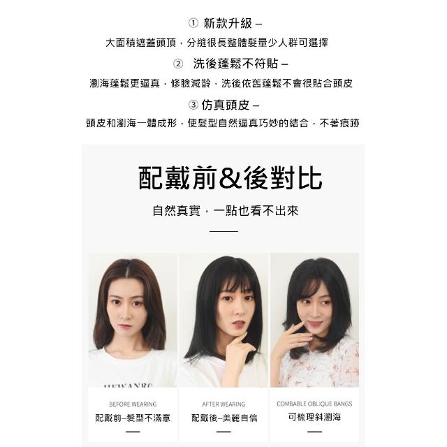 空氣瀏海 頭頂髮片 全真髮髮片 女生假髮 - 遮白髮 增加髮量 可隨意分線 黑二髮品 ORL